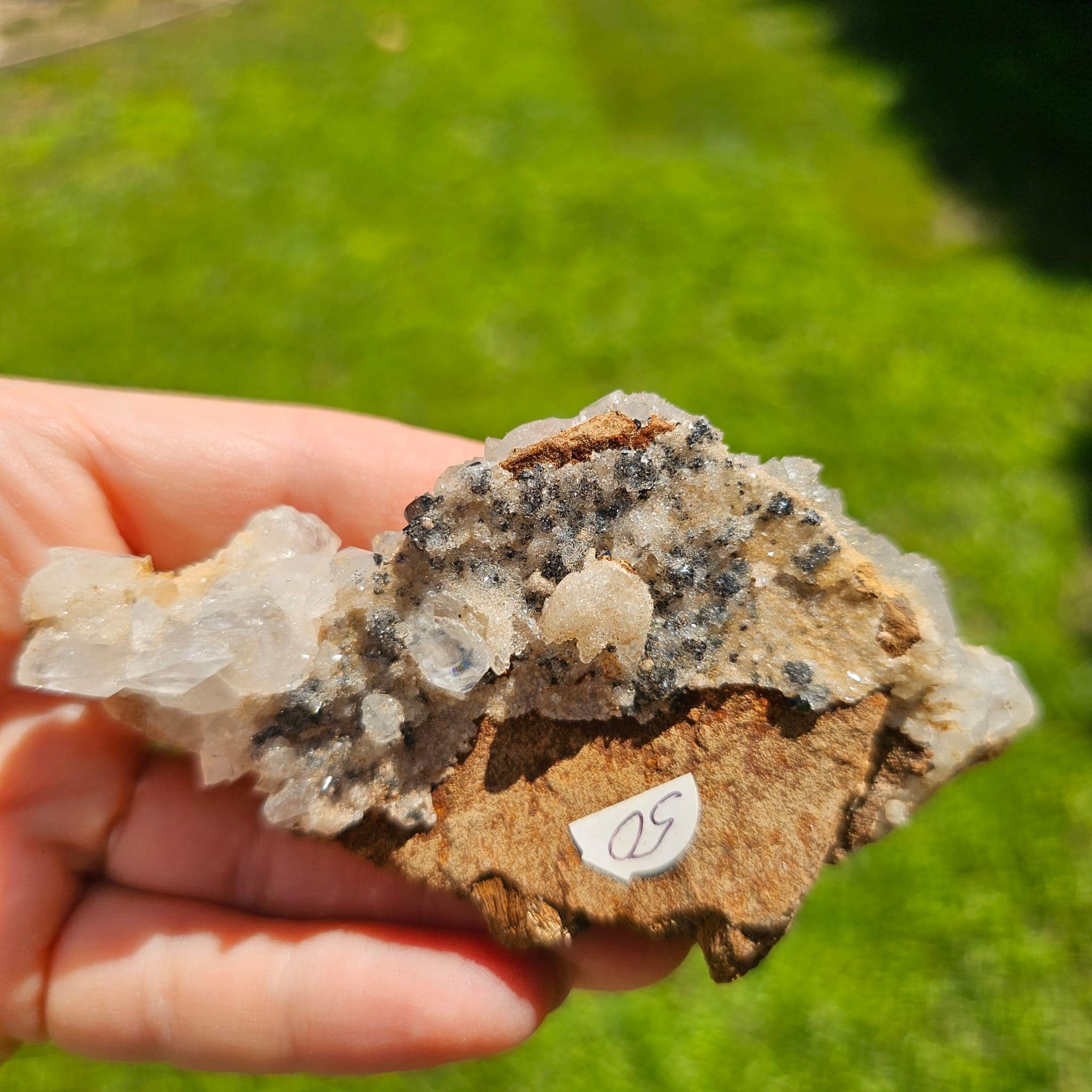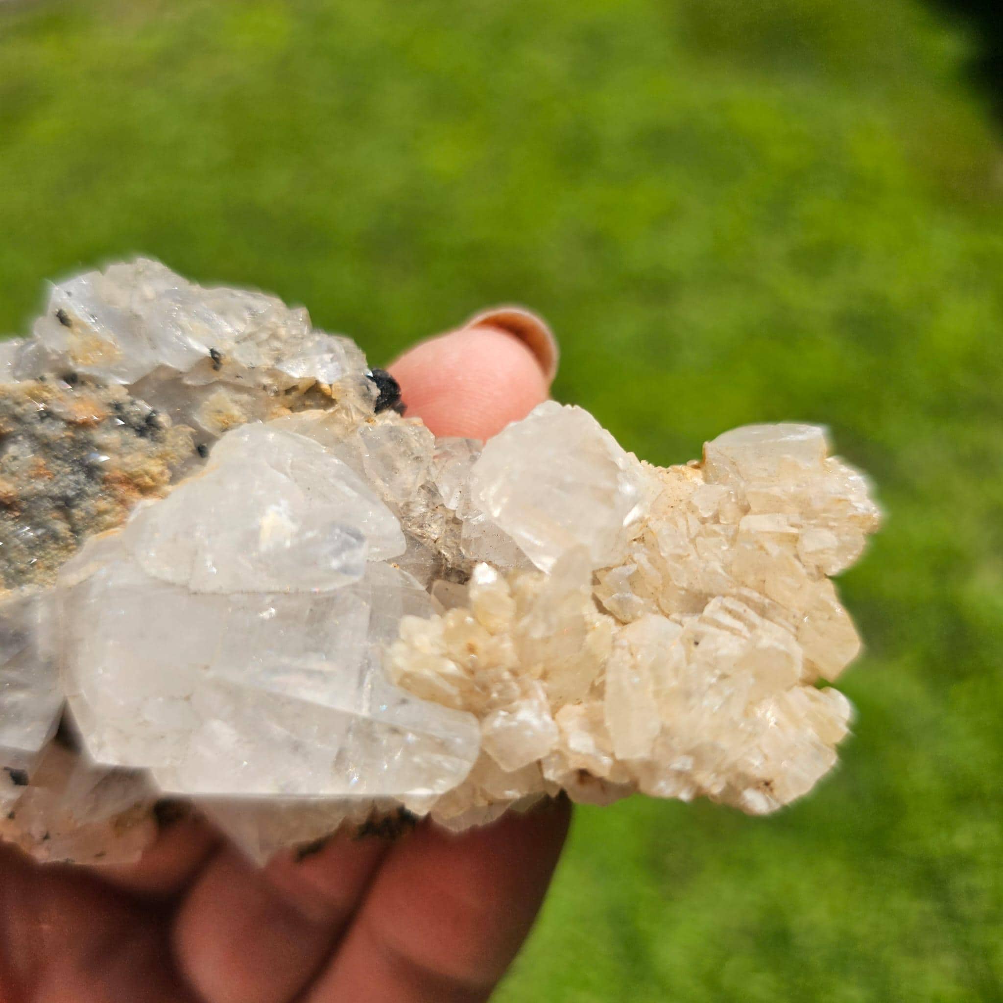 Discover the beauty and complexity of this stunning multi-mineral specimen, featuring Fluorite, Quartz, Sphalerite, and Calcite all growing together in one rare formation. This 119.6g cluster showcases a striking combination of colors, textures, and crystal habits—making it an exceptional piece for collectors, healers, and mineral enthusiasts.