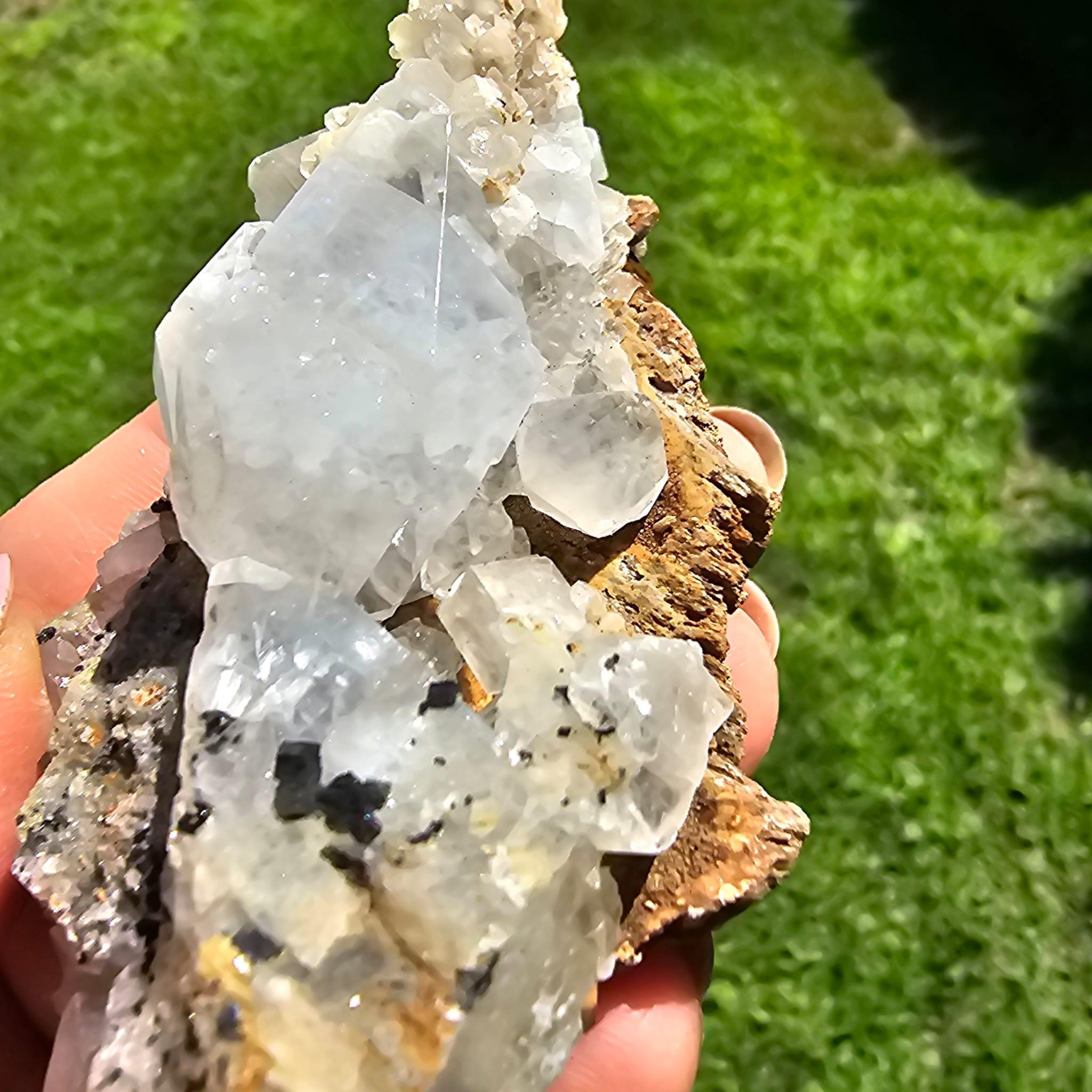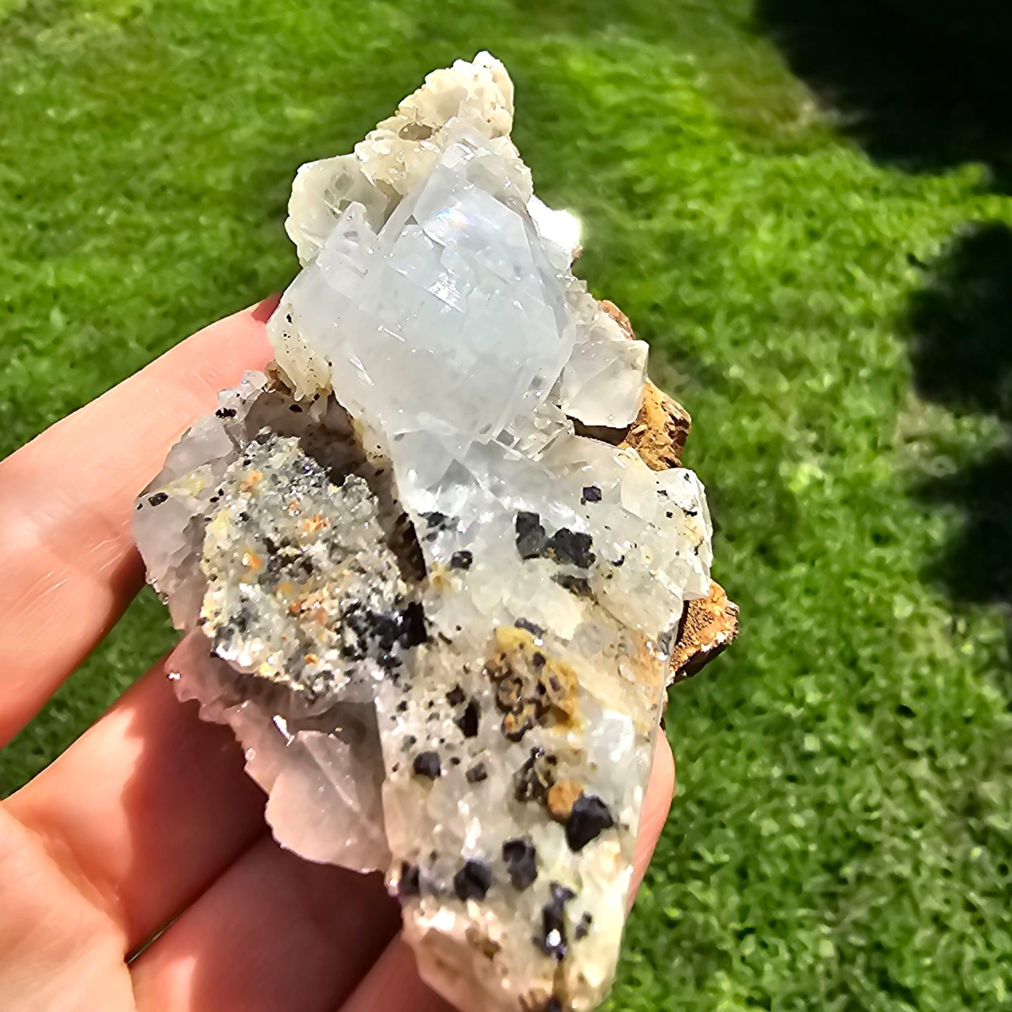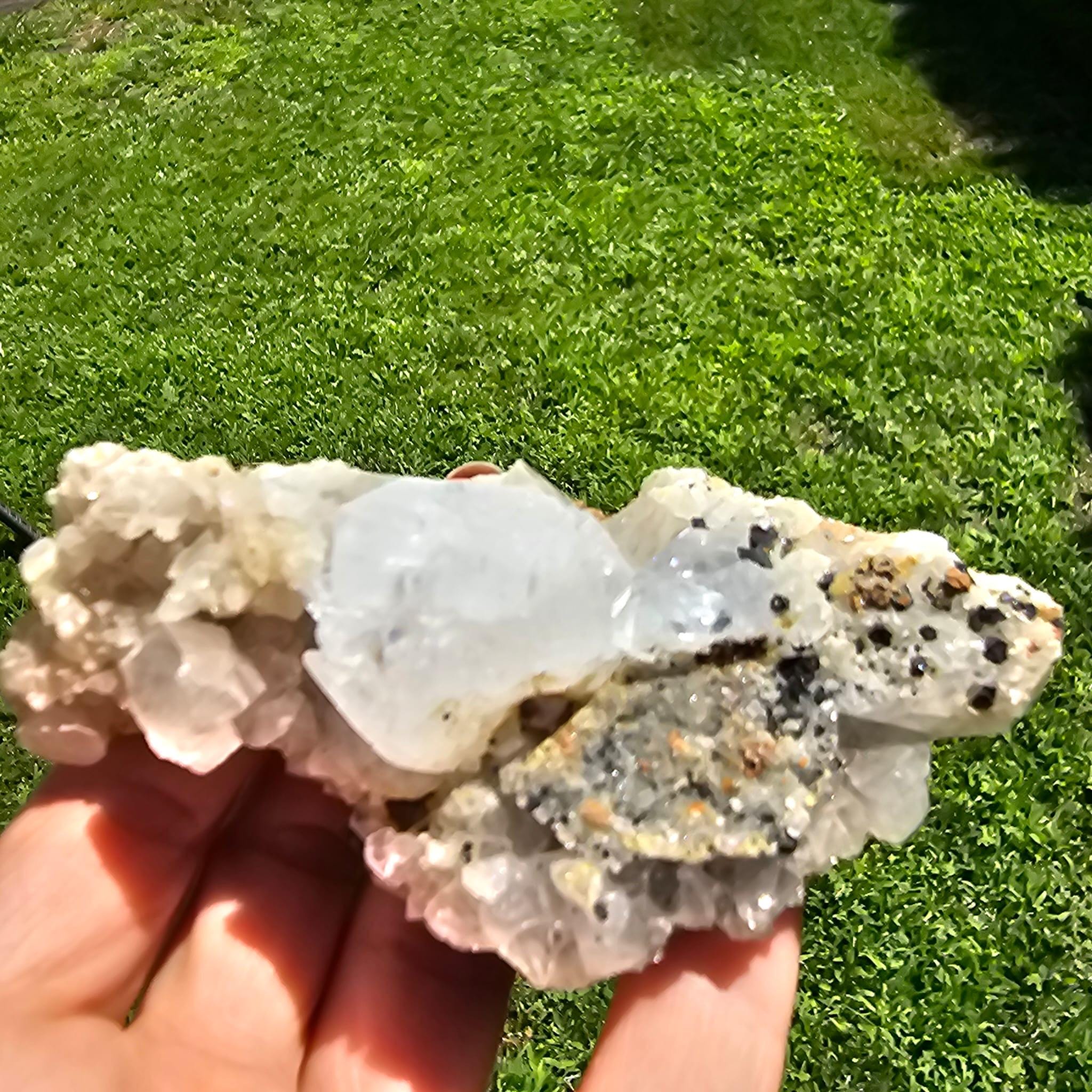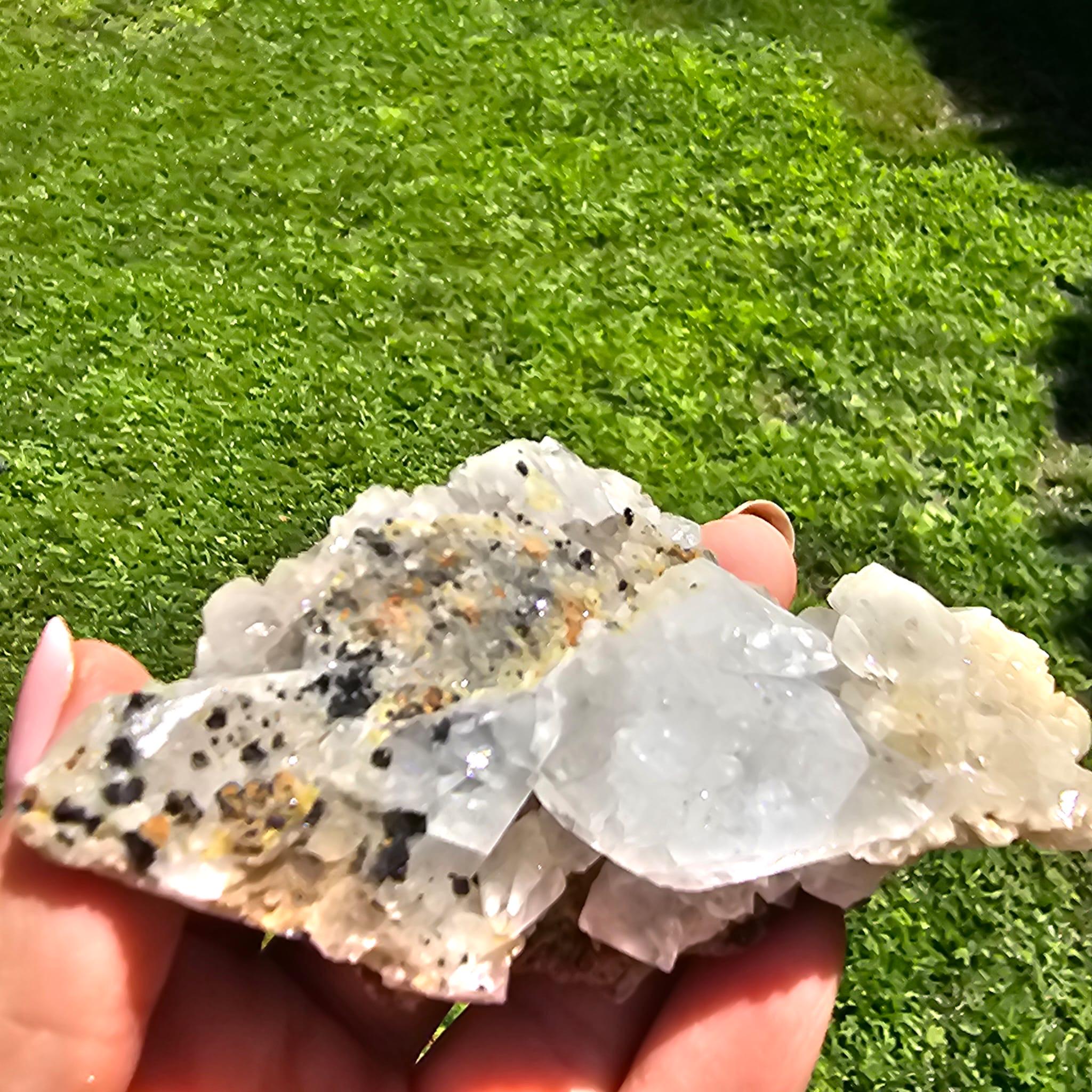 Fluorite is known for its vibrant clarity and structure, Quartz enhances energy flow, Sphalerite adds grounding and depth, and Calcite brings gentle, uplifting energy. Together, they create a powerful and visually captivating natural specimen.