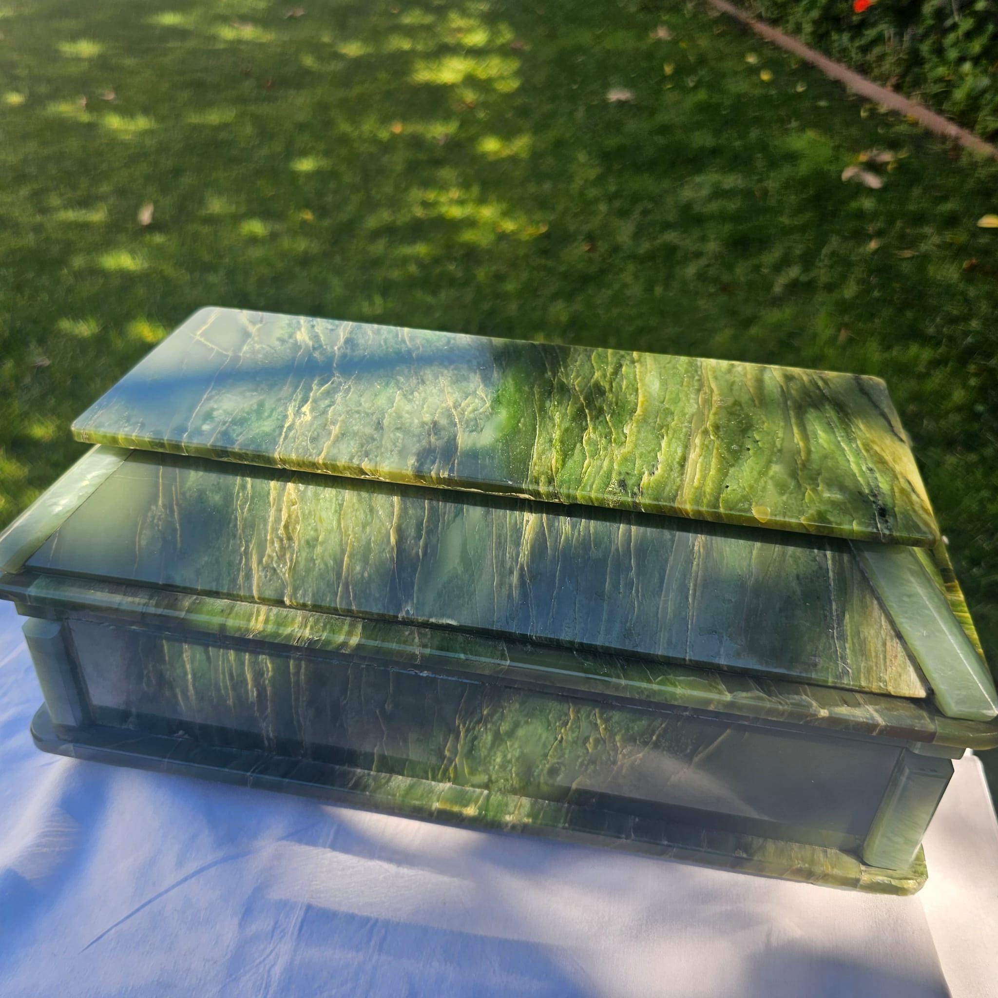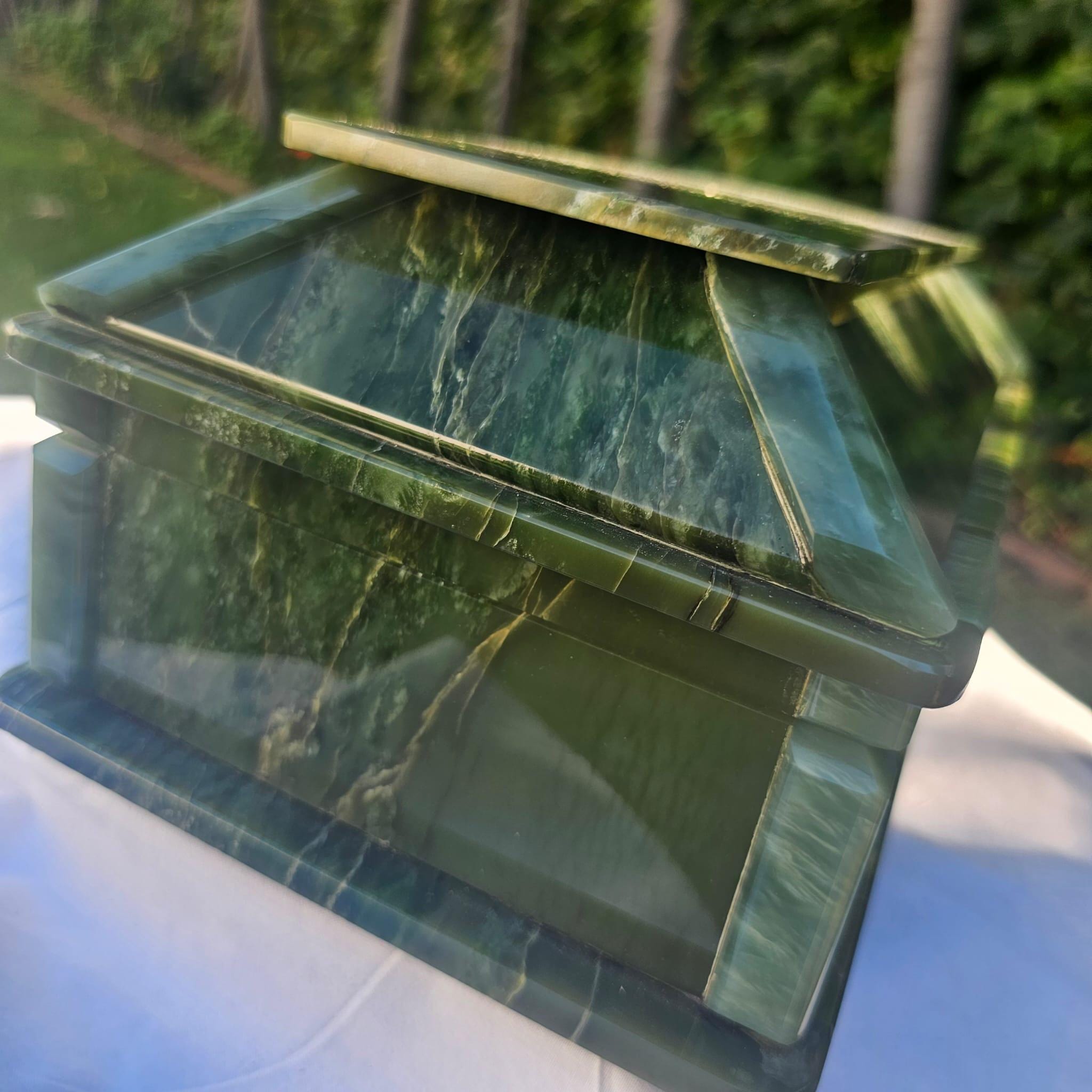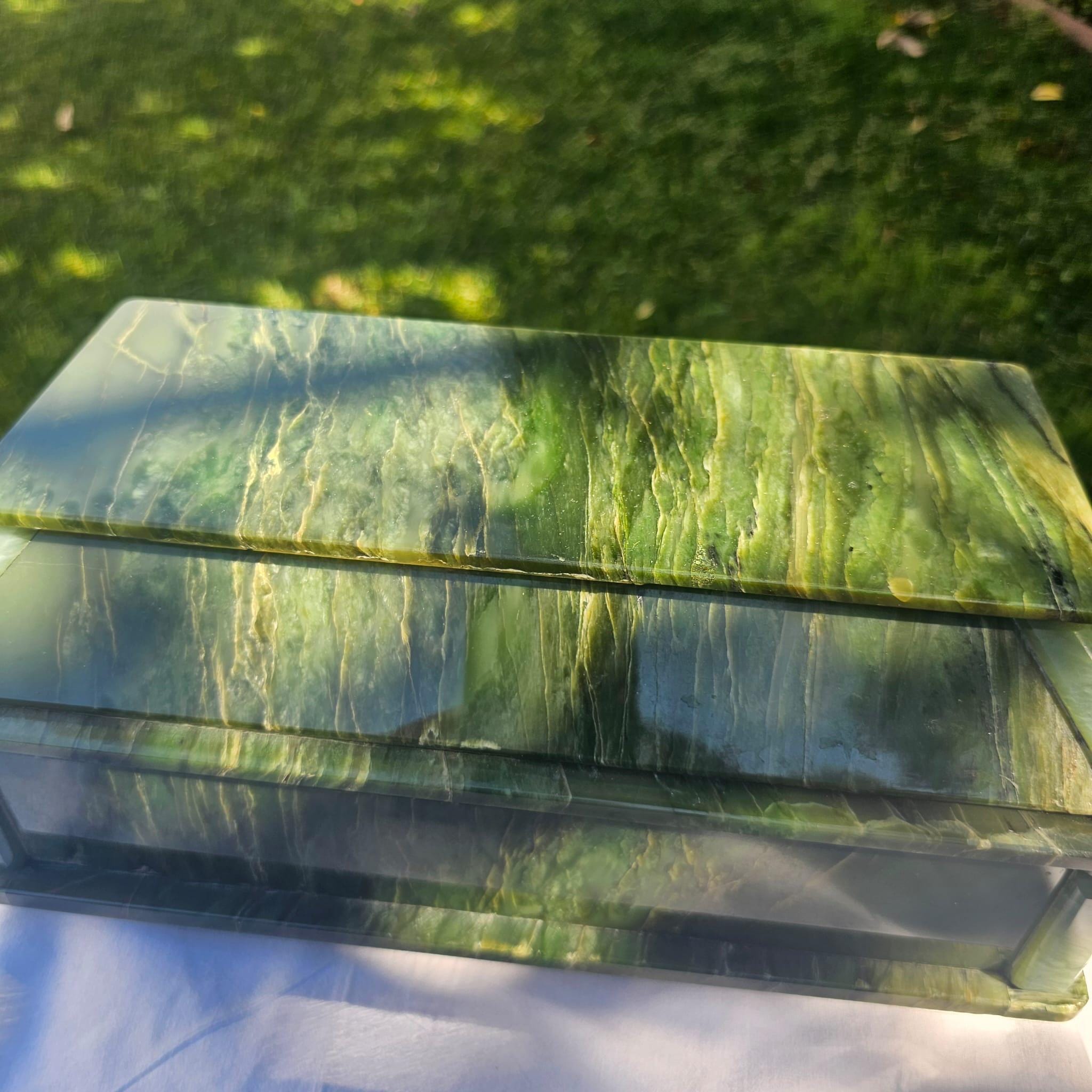 🌿 Handcrafted Russian Nephrite Jewelry Box – Natural Green Gemstone Collectible & Elegant Gift