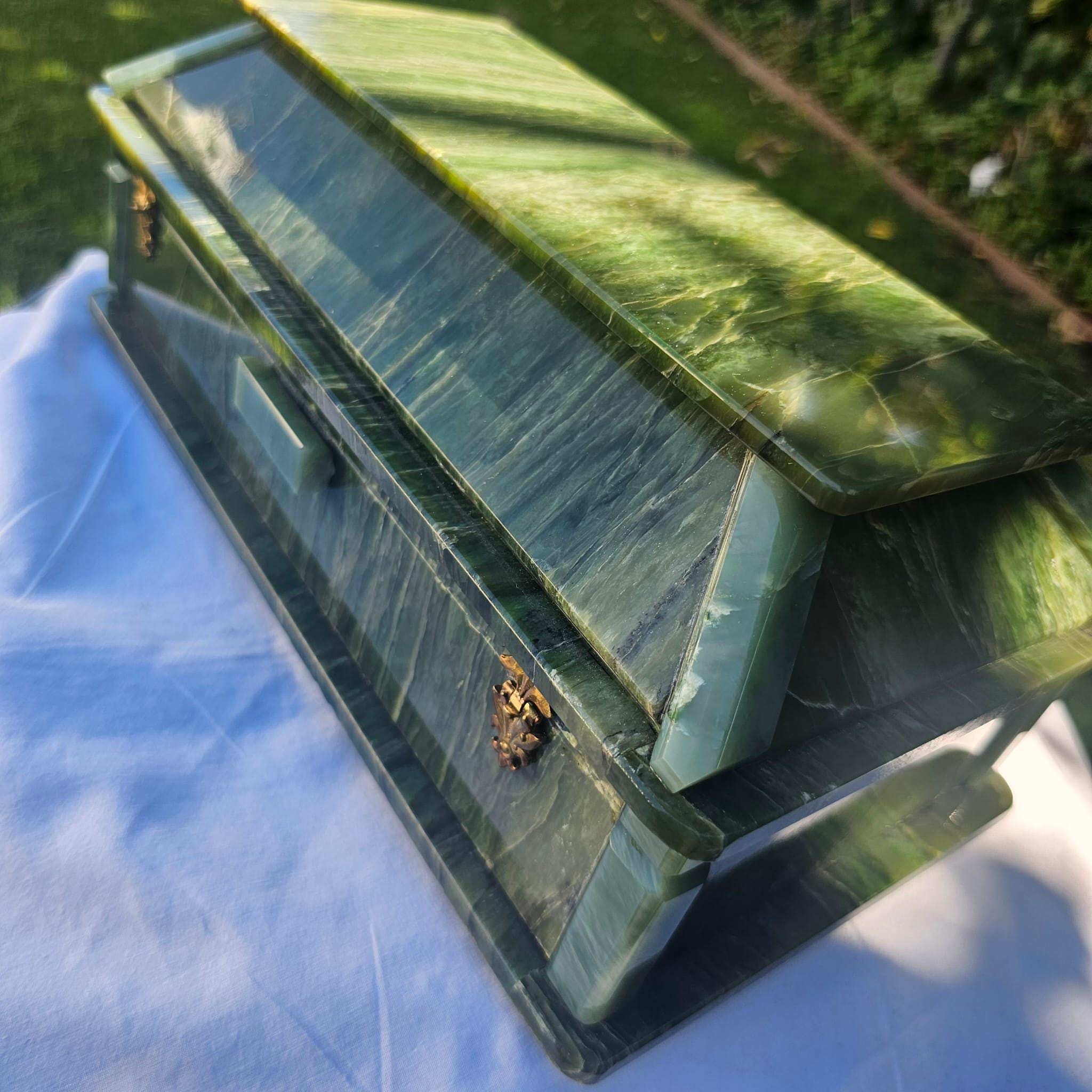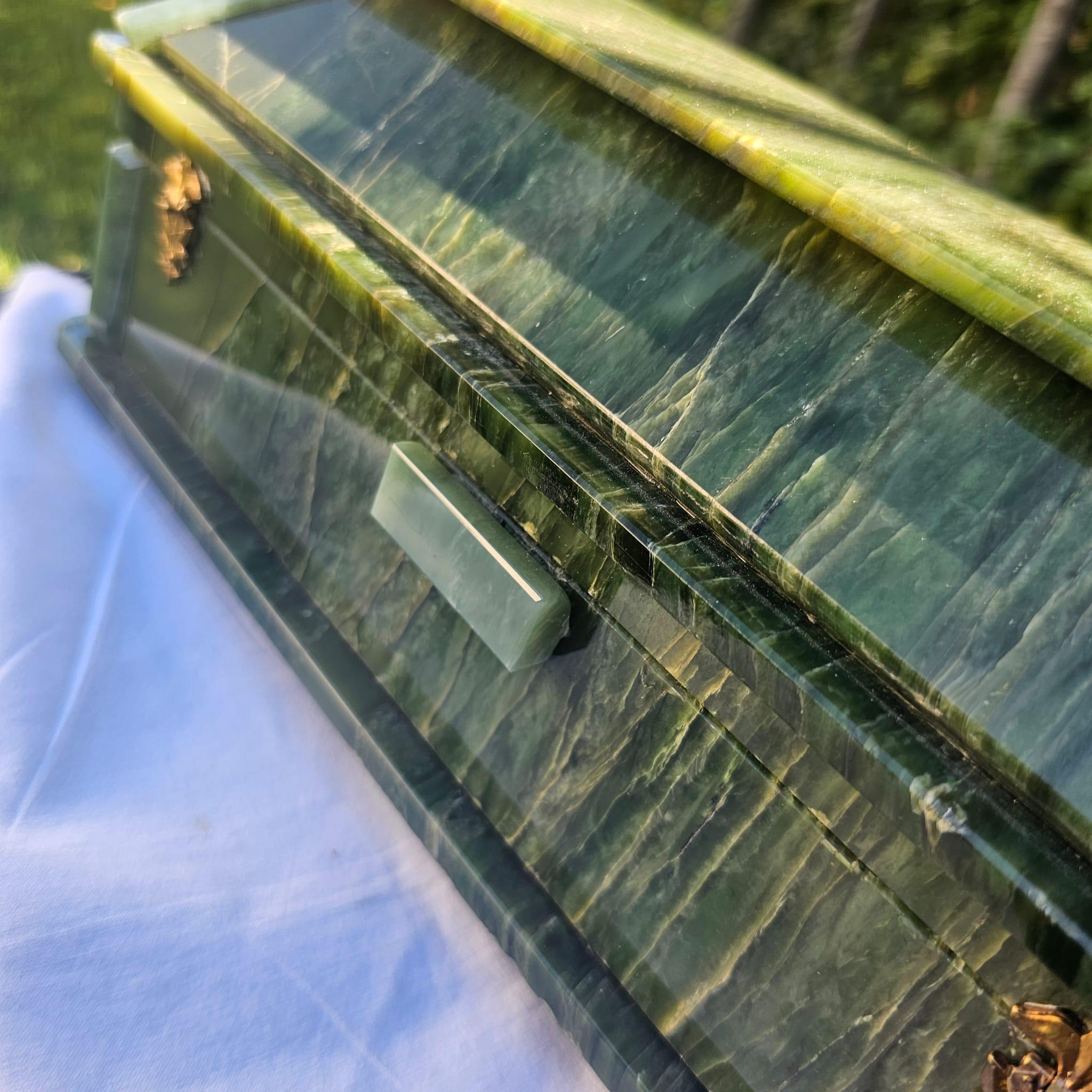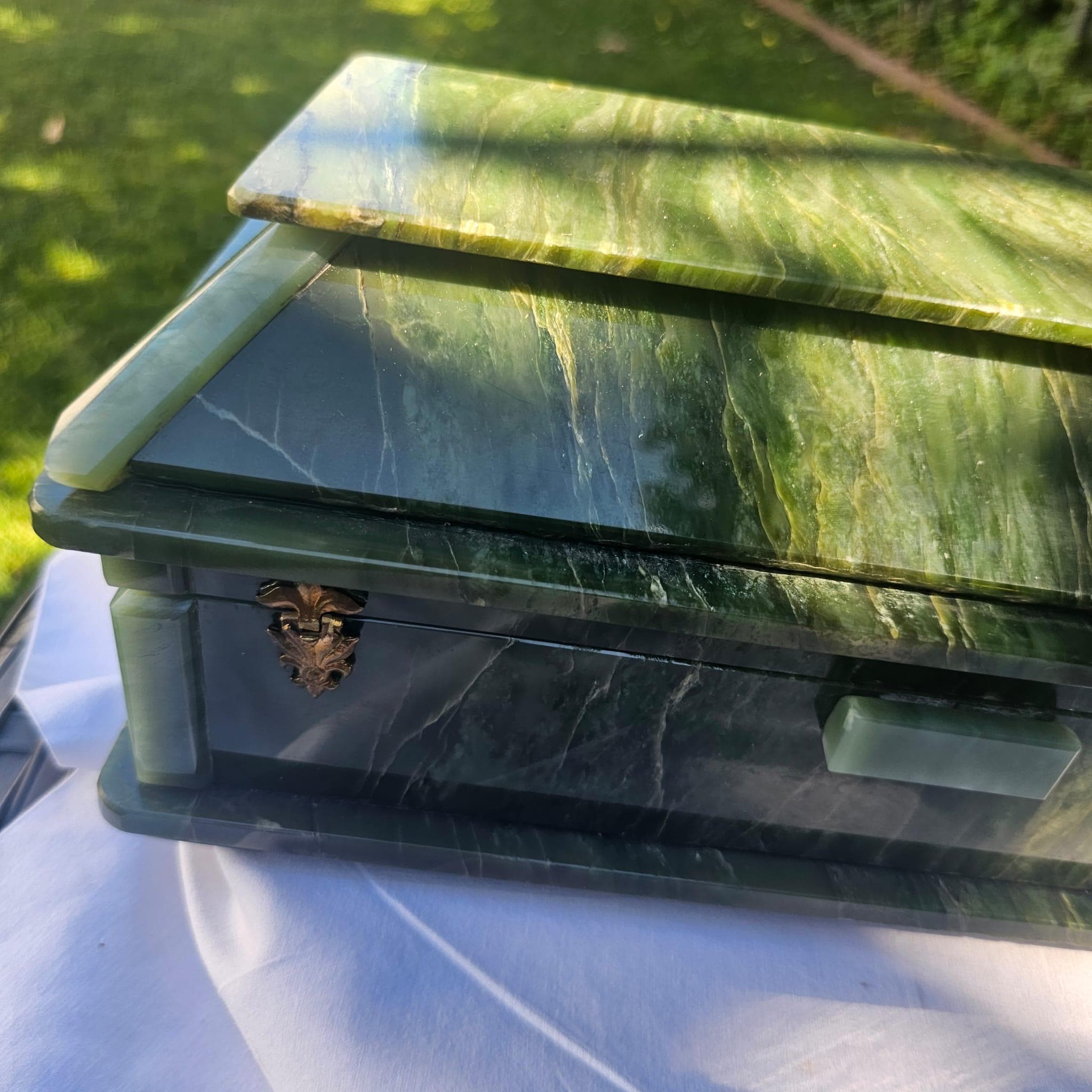 🌿 Handcrafted Russian Nephrite Jewelry Box – Natural Green Gemstone Collectible & Elegant Gift