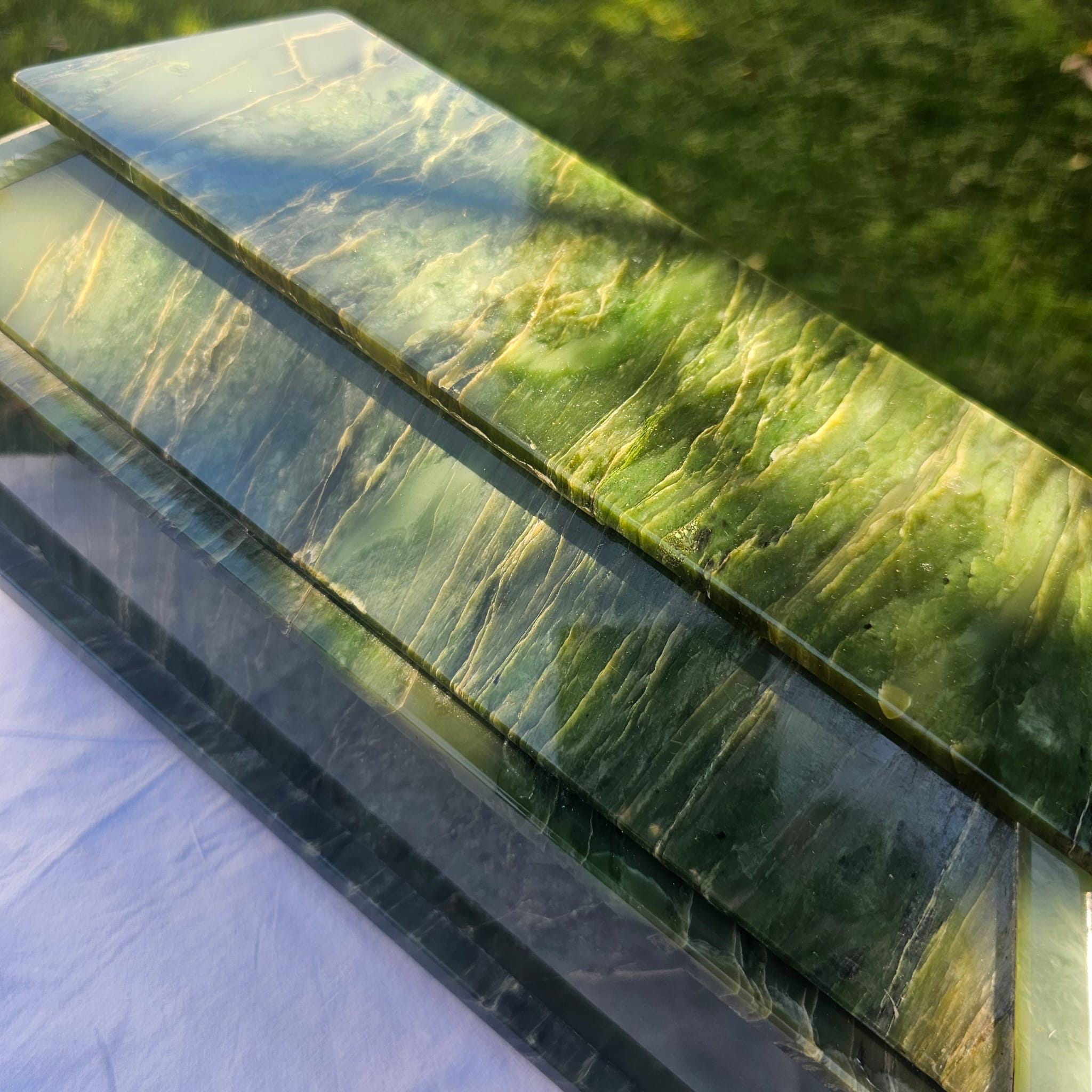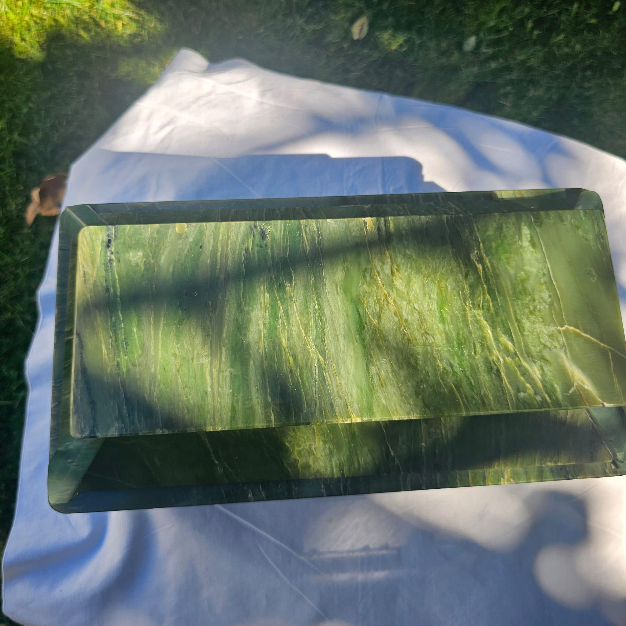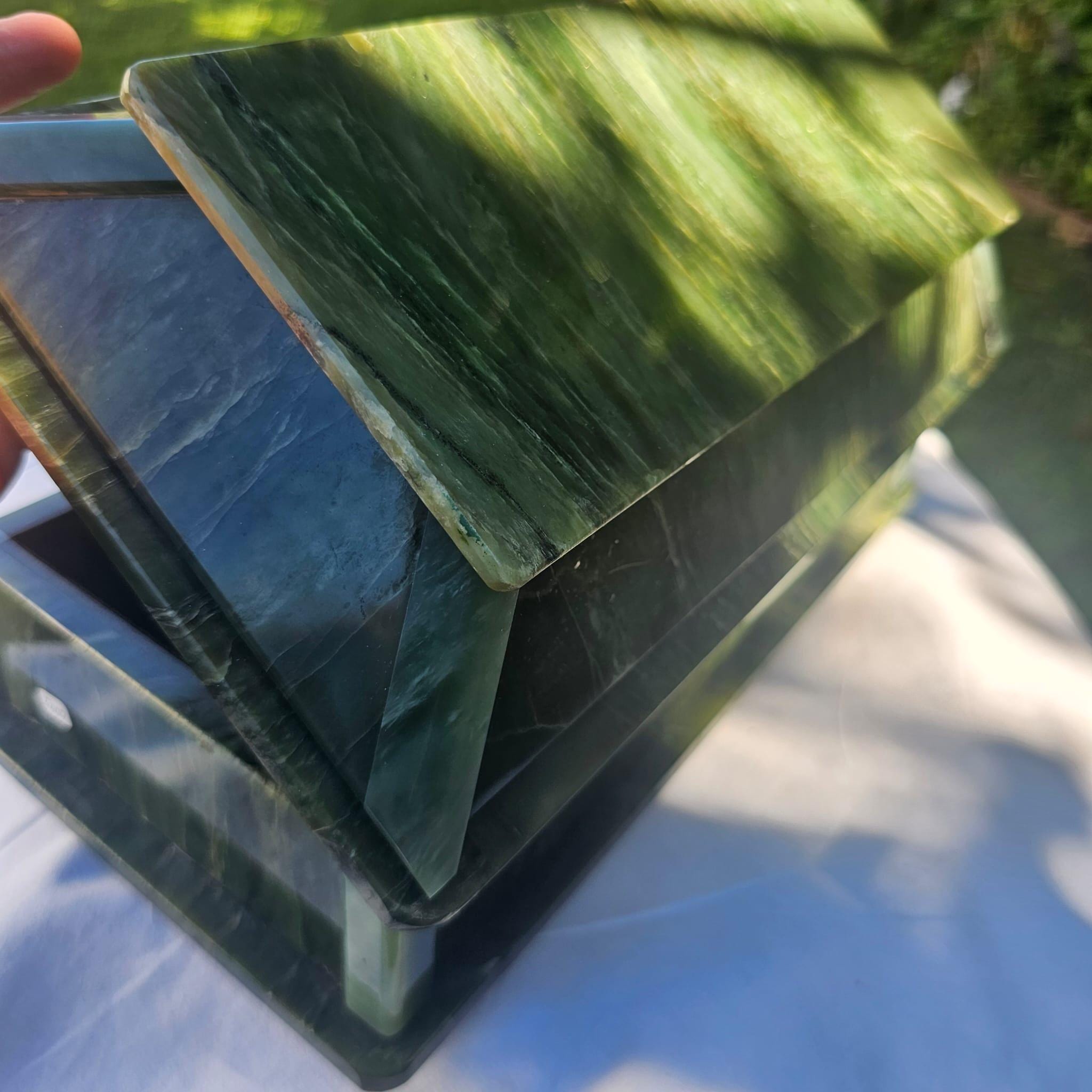 Discover the beauty of genuine Russian Nephrite, expertly carved into a luxurious jewelry box that elevates any space. This exquisite piece showcases the rich green tones and naturally flowing patterns that Nephrite is known for, making it a stunning blend of artisan craftsmanship and natural gemstone beauty.