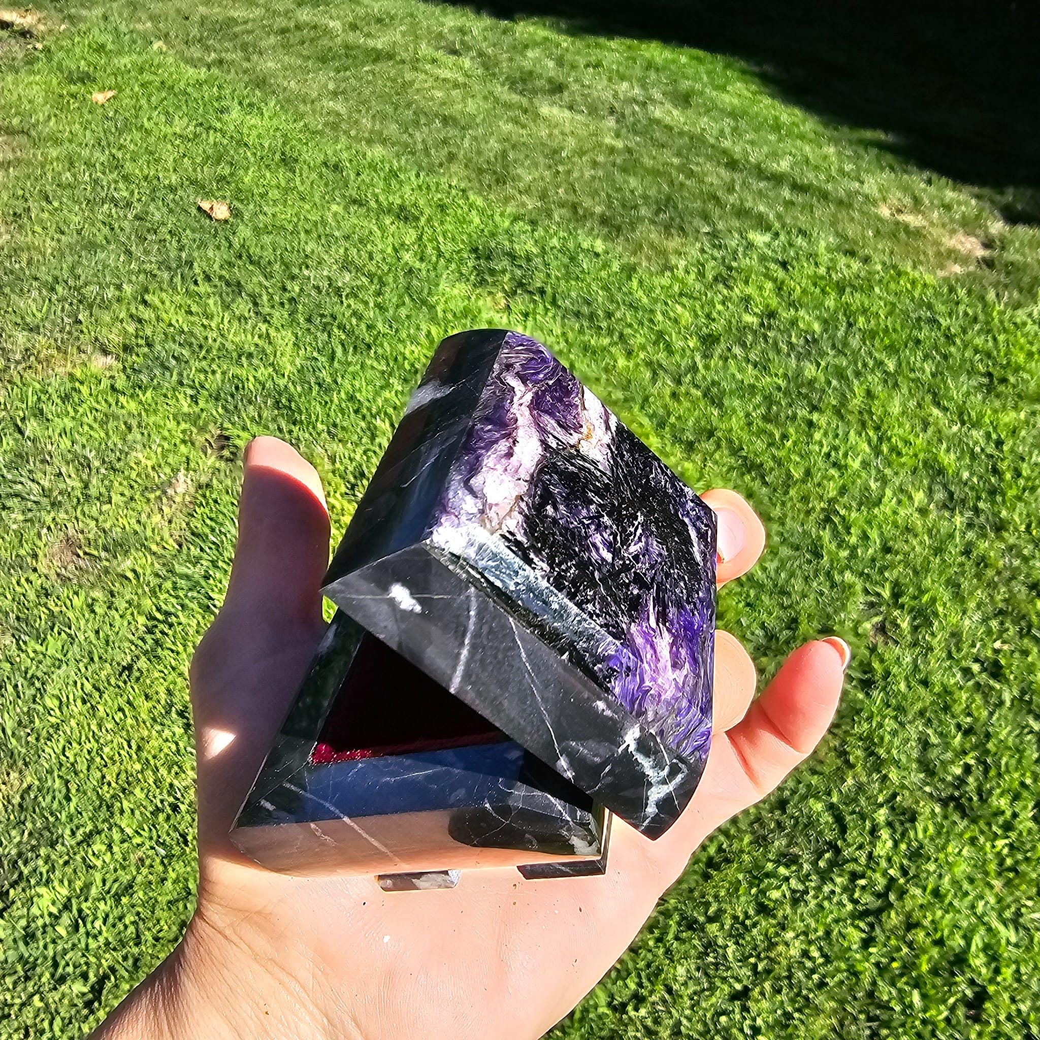 ✨ Whether used as a jewelry box, decorative stone container, or cherished keepsake, this Charoite & Black Marble piece brings serenity, elegance, and timeless style into any space.